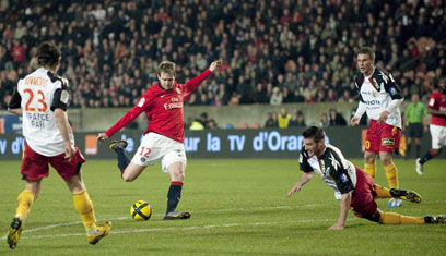 מתיאו בודמר מסן ז'רמן תוקף את שער לאנס (AFP)