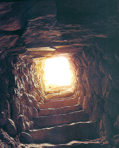 אור השמש חודר מבעד לגרם המדרגות של מגדל יריחו