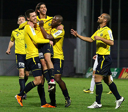 שחקני מכבי תל אביב. הקבוצה לא תעמוד לדין (צילום: אלי אלגרט)