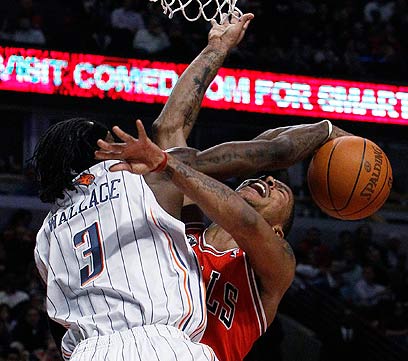 ג'ראלד וואלאס חוסם את דריק רוז, אבל מפסיד בסוף המשחק (AP)