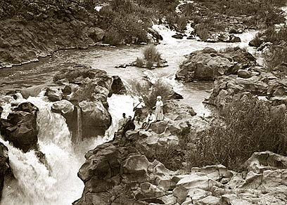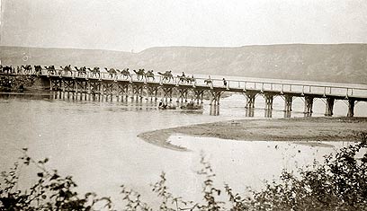 5. שיירת גמלים עוברת על גשר הכלונסאות במוצא הירדן מהכנרת