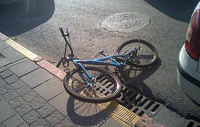 אופניו של הילד בזירת התאונה (צילום: יחיאל גרינפלד, הצלה גוש דן)