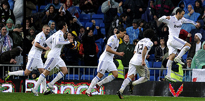שחקני ריאל חוגגים את השער של קרבאליו (AFP)