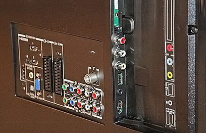רוב המחברים ממוקמים בזוית ישרה לאחור, דבר שיכול להפריע כשתרצו להצמיד את המסך אל הקיר, אבל הוא ניתן לפתרון על ידי רכישת מתאמי זוית. כמה מהכניסות פונות הצידה, בינהן כניסת HDMI, קומפוזיט, אודיו RCA וגם חיבור USB עבור קבצי מולטימדיה מסוג אודיו ותמונות.