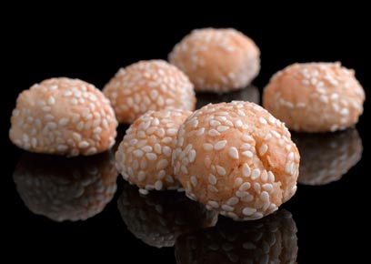 - מגלגלים מהבצק כדורים בקוטר 1/2 2 ס"מ וטובלים בשומשום. מסדרים בתבנית מרופדת בנייר אפייה.