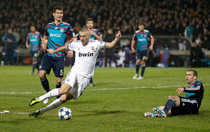 בנזמה בדרך לשער היתרון מול ליון (צילום: AFP)