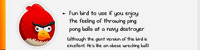 למשל, הציפור השחורה היא כיפית משום שלתקוף את מבני החזירים בעזרתה זה "כמו לצוד ארנבונים בפצצת מימן". לעומתה, יש ציפור אחת שכותבי אוטמיל היו שמחים להכחיד, לו היתה קיימת במציאות.