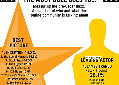 בעוד כמה שעות יחל אירוע השטיח האדום השנתי – האוסקר ה-83 של הוליווד. השנה, הודות לכמות הסרטים המקוריים והמסקרנים שמועמדים בו, משך הטקס אפילו יותר הימורים מבדרך כלל. מדור מחשבים, שתמיד שמח לדרדר אתכם להימורים, סקר את אומת האינטרנט בניסיון להאזין בפייסבוק ובטוויטר למי שאתם חושבים שעומד לזכות באוסקר.