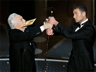 דגלאס גונב את מקל ההליכה ואת ההצגה (צילום: רויטרס)