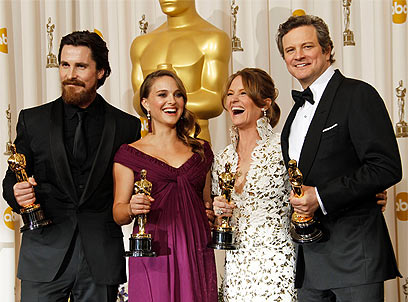 "Strangers No More" על בי"ס ביאליק-רוגוזין בת"א זכה בפרס לסרט התיעודי הקצר. "נאום המלך" גרף רק ארבעה פרסים מ-12 מועמדויות בטקס האוסקר ה-83, אך הוכתר כסרט הטוב ביותר. נטלי פורטמן היא השחקנית הראשית הטובה ביותר