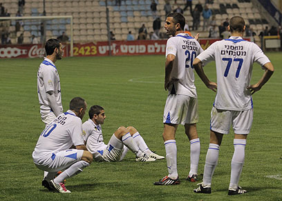 הסתיים המסע. שחקני הפועל פ"ת לאחר ההפסד (צילום: אורן אהרוני)