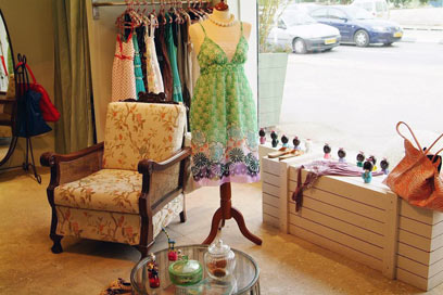 רצפת בטון, תאורה רכה ואשת מכירות שהתקשטה בשמלת פודרה ורדרדה עם פפיונים שחורים, קיבלו את פני. החנות לא גדולה, אך מסודרת באופן ידידותי וקל לשימוש. הפריטים תלויים על קולבים מצופים כולם חרוזים שקופים בשלל צבעים פסטליים אביביים ומסודרים במרווחים המאפשרים דפדוף נוח.