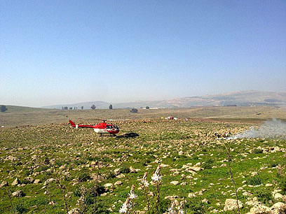 מסוק של מד"א בזירת ההתרסקות (צילום: דויד פישר, מד"א אשר)