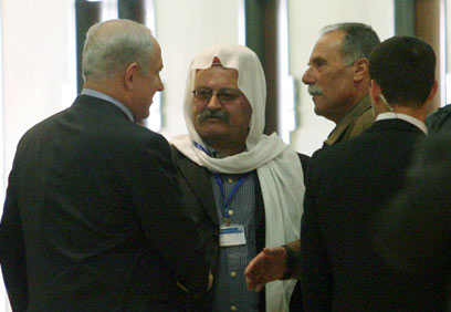 נתניהו ובני משפחות של הרוגים באסון הכרמל, לפני הדיון (צילום: גיל יוחנן)