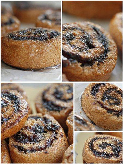 - בעזרת סכין חדה או קלף לחיתוך בצק, פורסים את גליל הסולת והתמרים לפרוסות בעובי 1 ס"מ. חשוב לחתוך בעדינות ובזהירות כדי לשמור על צורתן העגולה של הפרוסות ועל הפרדה מוחלטת בין שכבות הבצק לשכבות התמרים. מתקבלים שבלולים יפהפיים עשויים שכבות-שכבות של בצק סולת צהבהב וביניהן שבילי תערובת תמרים חומה.