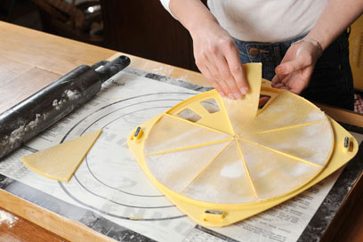 פטנט המאפשר להפוך בקלות בצק מרודד למשולשים שווים ומדויקים בשני גדלים, 138 שקלים.