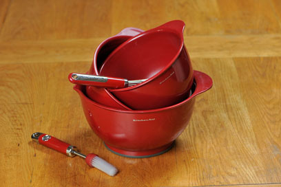 אביזר לערבוב בצק של Cuisipro, מחיר: 79 שקלים, יבואן: מ.ג.א סחר. כוסות מידה של KitchenAid, מחיר: 45.50 שקלים, ניופאן גורמה.