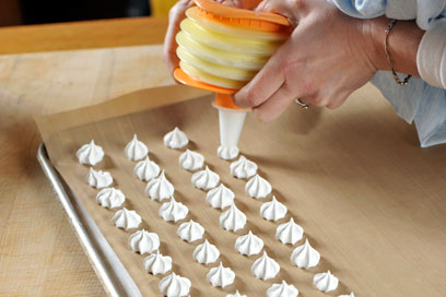 - מעבירים לשקית זילוף עם צנתר חלק או משונן מס' 8 ומזלפים טיפות קטנות על תבנית עם נייר אפיה או משטח סיליקון.