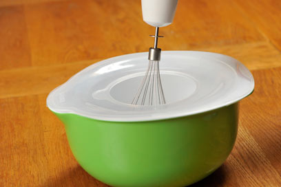 כל מי שמרבה להקציף יתאהב בקערה הזו מייד. ראשית היא עשויה מלמין, חומר מצוין, ובתחתיתה גומי רחב ומעוגל שמאפשר לטלטל את הקערה בזמן הלישה או הקצפת החלבונים מבלי שתחליק מהשיש, בצידה פיית מזיגה. היתרון הגדול במכסה - האוטם את כל הקערה כשבאמצעו מכסה קטן דרכו ניתן להקציף או לערבל מבלי שבחומר "ישפריץ" לכל עבר. נהניתי! נפח: 6 ליטר. מחיר: 139 שקלים, יבואן: שקל.