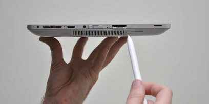 למחשב שני שקעי USB, מחופים. חבל שהחיפויים שלהם דומים יותר לכיסוי שקע של מצלמה קומפקטית מאשר לשל טאבלט עילית: קשה להוציא ולהכניס אותם, והם עומדים בסתירה לסטייל של המכשיר אליו הם מחוברים. יש לו גם שקע מיני HDMI, שקע אוזניות וקורא כרטיסים משולב.