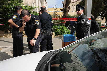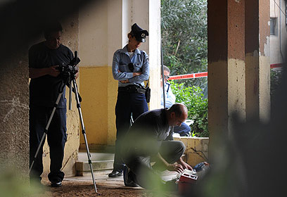 אוספים ראיות בזירה (צילום: ירון ברנר)