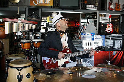 "כשאני בא לפה, זה כמו ילד שנכנס לחנות ממתקים ורוצה הכל. בגיל 6 קיבלתי את הגיטרה הראשונה שלי וזה היה לוקסוס. היום אני יכול להרשות לעצמי לקנות כל דבר. גיטרה אקוסטית, קלאסית או באס שאני הכי אוהב. אבל אני צריך להרגיע את עצמי כי לפעמים אני קונה רק בגלל הצבע, שיתאים למצב רוח ולבגדים. ככה זה אצל גבר בן 45, מוזיקאי, אקסטרהווגנט - כל יום חוגג את החיים, לא דופק חשבון לאף אחד".