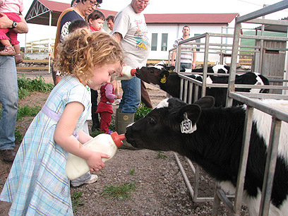 מאכלים את העגלים הקטנים. משק קרמר "מי ומו" (צילום: דפנה קרמר)