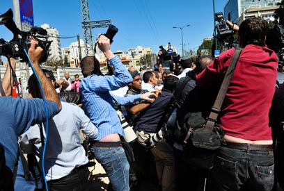 מהומה מחוץ לבית המשפט. "מה שעשה גרוע משחיתות" (צילום: בן קלמר)