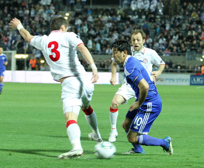 דקה 10': טל בן חיים הבלם הגביה כדור לעבר הרחבה הגאורגית, אבל הנגיחה של רפאלוב לא היתה מדויקת ויצאה החוצה.
