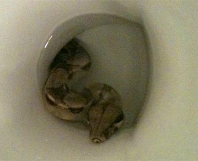 הפולש הצליח להימלט ונעלם בתוך צנרת הביוב. הנחש באסלה (צילום: AFP)