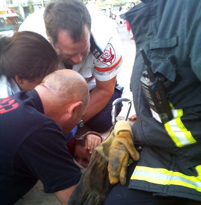 מאמצי החילוץ. "הילד לא בכה" (צילום: אבי קורדובה, שרותי כבאות חולון)