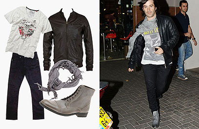 ז'קט עור: הוניגמן מן, 1000 שקל; טי שירט: פרנץ' קונקשין, 189 שקל; ג'ינס סקיני שחור: ד"ר דנים לדה בראנץ', 750 שקל; מגפיים: אלדו, 599 שקל; צעיף: רנואר, 79 שקל