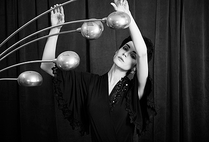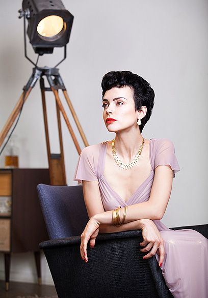 שמלה - עירית נוי, 1400 שקל; שרשרת - אוסף פרטי; עגילים ושלישיית צמידים - שלומית אופיר, 99 ו-149 שקל בהתאמה; פנס קולנוע וכורסה - וינטג' גאלרי, 6000 ו-4500 שקל, בהתאמה.