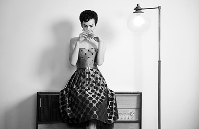 שמלה - רן צוריאל, 1990 שקל; חגורה - שלומית אופיר, 149 שקל; שרשרת ועגילים - שלומית אופיר, 175 שקל ו-99 שקל בהתאמה; מנורה ורדיו - אוסף פרטי.