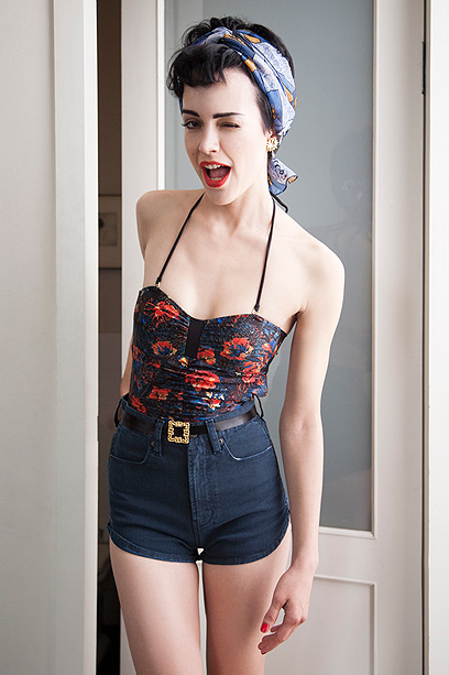 בגד ים - אינסייט, 420 שקל; מכנסון ג'ינס - צובי, 750 שקל; חגורה ועגילים - שלומית אופיר, 149 שקל ו-88 שקל בהתאמה; מטפחת - אוסף פרטי.