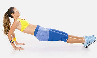 2. כופפי את המרפקים כשאת שומרת על בטן אסופה וישבן מכווץ.