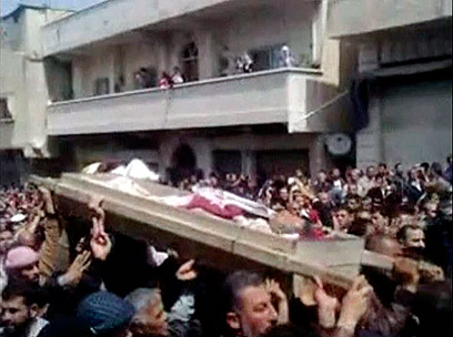 "שלושה הרוגים בבניאס". הלוויית מפגינים שנהרגו בדרעא (צילום: רויטרס)