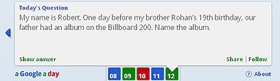 משחק פאזל חדש של חברת גוגל, A Google a Day, שואל את הגולשים שאלת טריוויה קשה אחת ביום. אבל בניגוד למשחקי טרויוויה מוכרים, הוא לא פונה לגולשים בעלי ידע כללי נרחב, אלא דוקא לאלו שיודעים ל"גגל" – למצוא במהירות מידע רלבנטי ברשת במנוע החיפוש של גוגל.