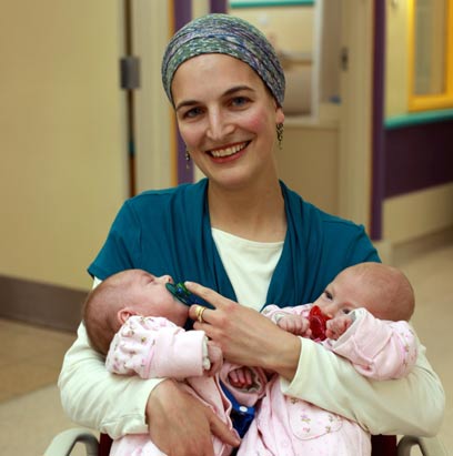 "היו סביבי המון רופאים וכולם היו היסטריים. מיד אחרי שהוציאו את התאומות, לקחו אותן ממני ישר לפגייה והחדירו להן תרופה מצילת חיים לווריד, שאמורה להשאיר את הצינור שמחבר את הלב לריאות פתוח".