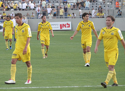 שחקני מכבי תל אביב. אין כבוד לאוהדים (צילום: אורן אהרוני)