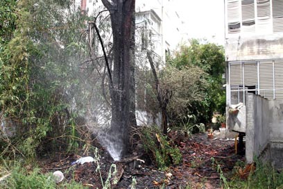 חשד להצתה: עצים נשרפו במרכז ת"א, דיירים פונו