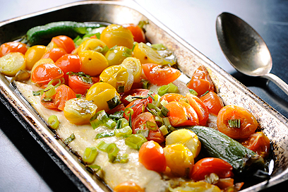 דגים אפויים בעגבניות שרי (צילום: דודו אזולאי)