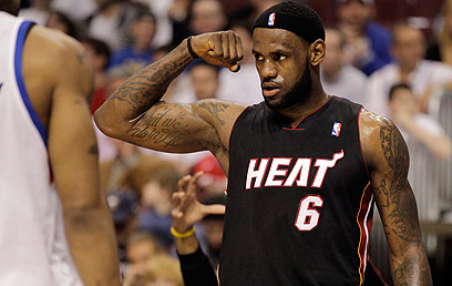 לברון מפגין שרירים מה הם מול פילדלפיה (צילום: AFP)