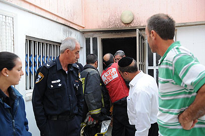כוחות הכיבוי בבית שעלה באש (צילום: הרצל יוסף)
