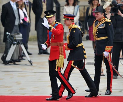 הארי, האח השובב של החתן, לבש את המדים המקובלים ונראה כאילו הכריחו אותו לבוא, אם כי הוא דאג להתבדח עם הנסיך בזמן שזה חיכה לקייט בכנסייה. קשה לתת ביקורת בונה לבגדי צבא מסורתיים. אמנם הצבע השחור מחמיא לג'ינג'ים, אבל הארי נראה סובל קשות בז'קט שנדמה היה שקטן עליו בכמה מידות, או שאלו פשוט השרירים המשורגים שהוא עובד עליהם בחדר הכושר המלכותי.