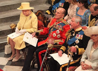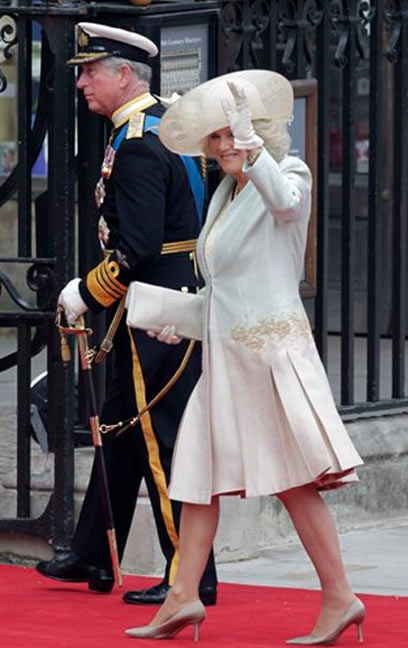 הנסיך צ'ארלס, אביו של וויליאם, לבש גם הוא את המדים הקבועים ודאג להוסיף את המדליות הראויות, כדי שיחשבו שהוא באמת משהו מיוחד. אם כי, המעצב(נ)ת חושבת שלמדליות היתה מטרה אחרת, והיא קשורה יותר בדוכסית קמילה שבחרה במעיל בשני צבעים - שנהב וורוד עתיק ועיטורים מוזהבים. אבל שוב הכובע, או יותר נכון, המפרשית שנחה על ראשה, גם פרי עיצובו של טרייסי, גנבה את ההצגה וגם יצרה אפשרות ציפה ורחיפה, ולכן המדליות שענד צ'ארלס היוו משקולת ראויה עבור השניים.