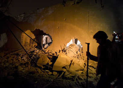 קדאפי טוען שמדובר ב"פשע מלחמה". נזקי ההפצצה (צילום: AFP)