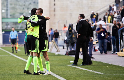 אבירם ברוכיאן וסטיבן כהן חוגגים את הניצחון מול פ"ת (נועם מושקוביץ)