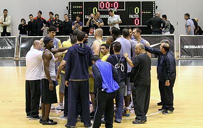 היום הארוך של מכבי ת"א, שהחל בטיסה לברצלונה, המשיך בהמתנה ארוכה בשדה התעופה המקומי למזוודות, הסתיים הערב (ד') באימון ראשון באולם הקטן הסמוך להיכל בו יתקיים חצי גמר היורוליג ביום שישי - אולם סנט ג'ורדי המפורסם על הר המונז'ואיק.