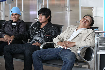 "אנחנו אופטימיים ובטוחים שנגיע בסופו של דבר לברצלונה, גם אם זה יהיה ברגע האחרון", אמר ל-ynet משה אברהם מנתניה. "הטיסה שלנו היתה אמורה להמריא ב-11:00 בבוקר, לאחר מכן היא נדחתה ל-12:00 וכבר שעות שאנחנו מחכים כאן. בכל מקרה חלק מהאוהדים שנמצאים איתנו בטיסה הם עורכי דין והם כבר דאגו לאסוף את מספרי הטלפון שלנו, כדי לארגן תביעה ייצוגית".